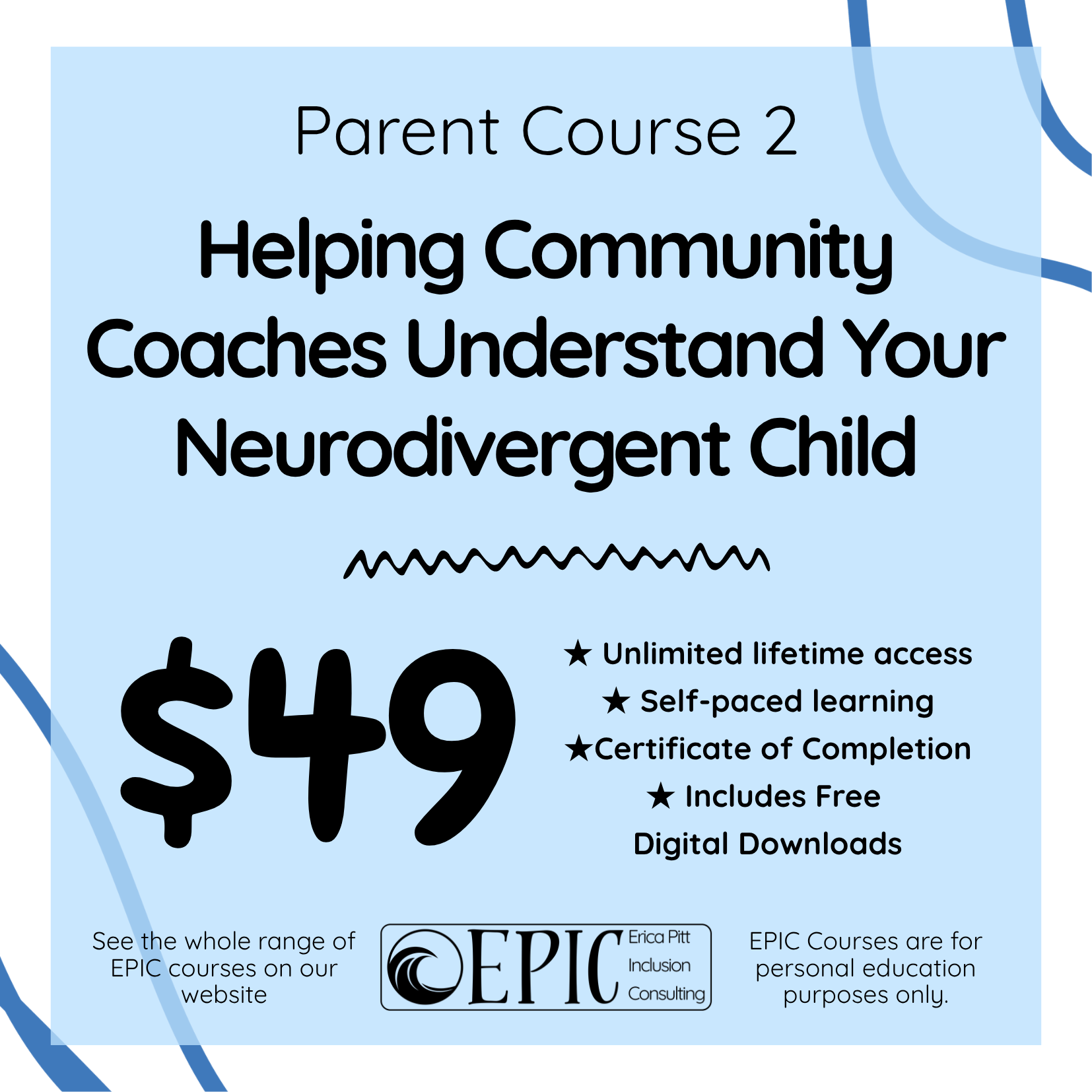 EPIC Inclusion Consulting courses are educational in nature only.